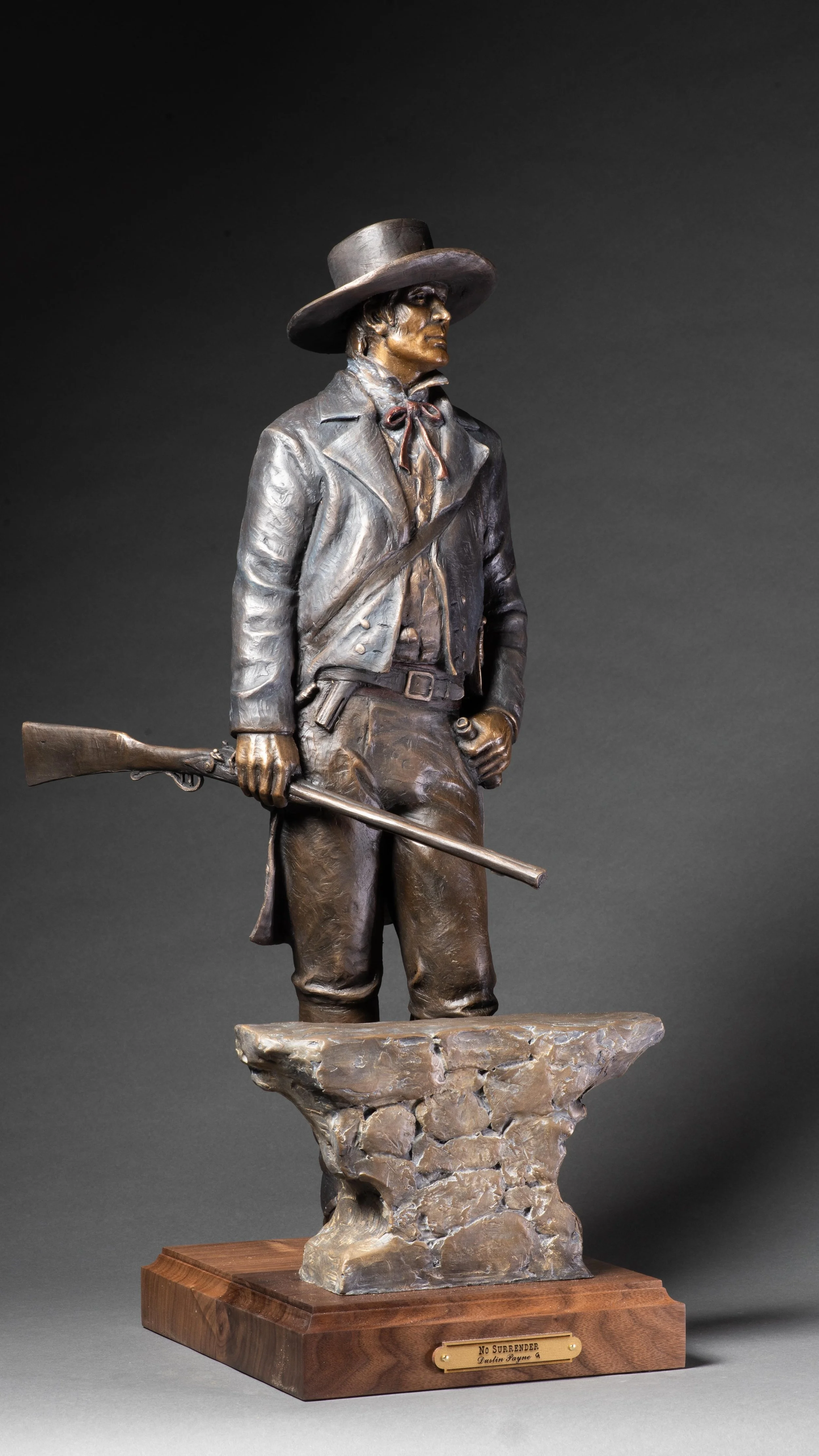 Dustin Payne was born into a rodeo and ranching family in southern New Mexico in 1981. Growing up as a third-generation sculptor in his family, he began learning the trade at an early age. Endless inspiration came out of studying the great works of Remington and Russell, and he was influenced by the books and drawings of Will James…