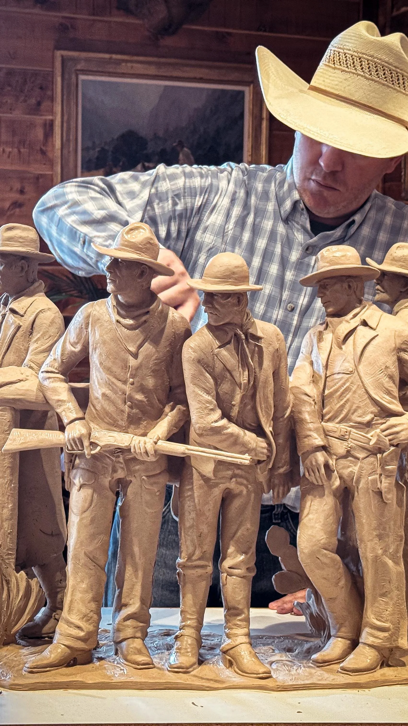 Best quote of the day —when asked to say a few words, artist Dustin Payne said, “I started to write a speech, and I drew a picture of a horse instead.” He is one talented young man. Unveiling of the sculpture was impressive.